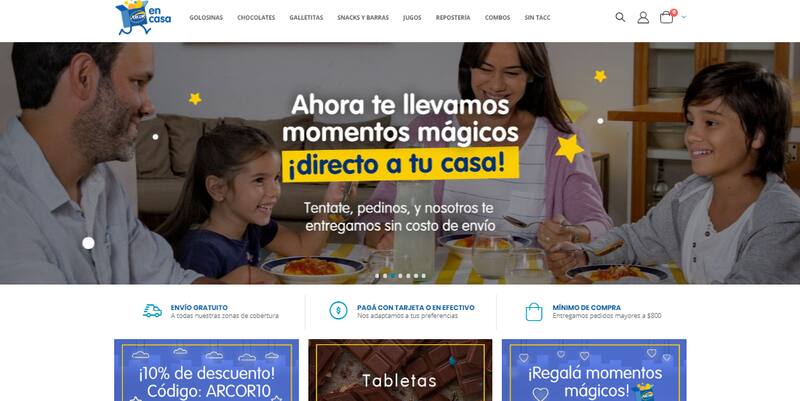 Al igual que Paladini, Arcor empezó a vender de forma directa por medio de una plataforma propia de comercio electrónico, Arcor en Casa, con entrega a partir de las 24 horas y sin costo de envío con una compra mínima de $ 800.