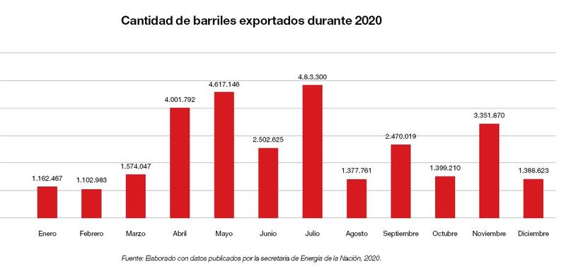 2010 es el año que se exportó más que durante 2020: 33,4 millones de barriles