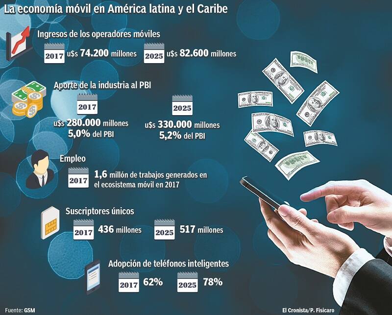 El dato se desprende del informe La economía móvil en América latina y el Caribe, elaborado por GSMA, una entidad que representa los intereses de los operadores de telefonía móvil de todo el mundo.