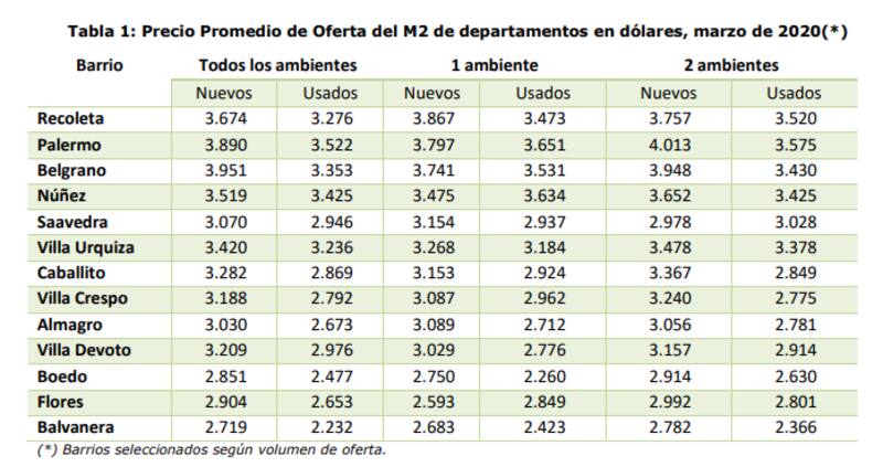 El reporte se elaboró a partir de un relevamiento de precios de oferta en dólares de departamentos en la Ciudad Autónoma de Buenos Aires publicados en Internet y en los clasificados de medios gráficos en marzo. Los barrios considerados son aquellos en los que se obtuvo un número significativo de observaciones. Las muestras relevadas superan los 9000 departamentos.