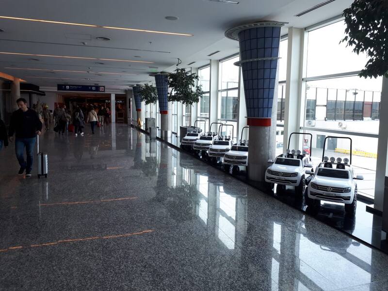La marca Volkswagen lanzó una acción de promoción para su pick up Amarok con réplicas a escala para ser utilizadas por niños en el Aeropuerto Ministro Pistarini de Ezeiza.