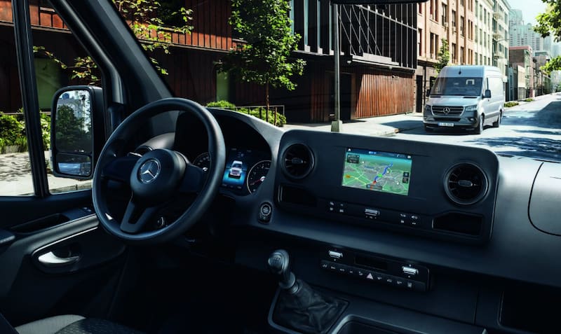 Como opcional, es posible incorporar cámara de retroceso que simplifica la maniobrabilidad del conductor, incorporada al sistema multimedia. En cada detalle, la Sprinter muestra sus puntos fuertes al integrar todos sus atributos individuales en un sistema integral.