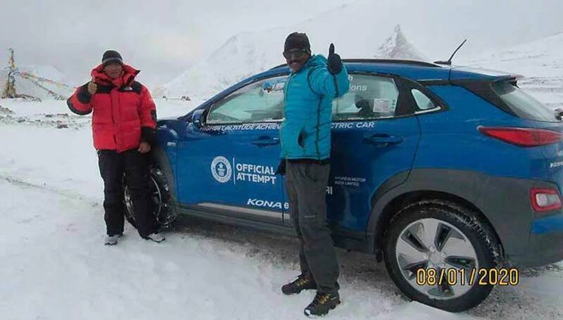 Un auto 100% eléctrico de Hyundai alcanzó un récord mundial y entró en el Record Guiness en la categoría "Mayor altitud obtenida por un auto eléctrico".