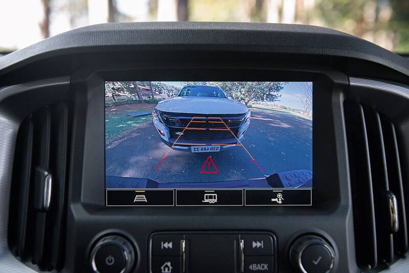 En la parte trasera, la S10 está equipada con una cámara de retroceso que ahora proyecta imágenes de alta definición y cuenta con la función de enganche. Tiene líneas guía específicas y líneas de zoom para facilitar la operación. Otra característica interesante de este sistema es que el usuario puede accionar la cámara trasera en pleno viaje para revisar el remolque.