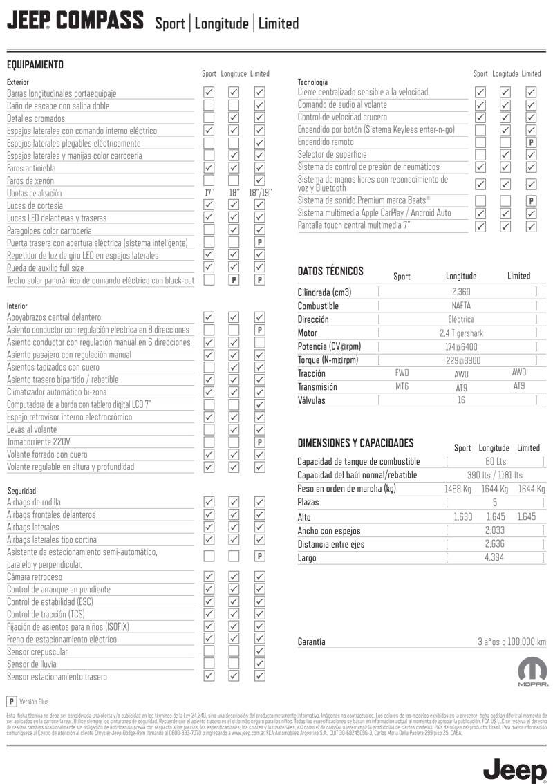 El Jeep Compass es de los SUVs que quiere un apasionado del 4x4. Tiene las características acordes para realizar el uso diario pero te ofrece una capacidad aventurera que ningún otro modelo del segmento te lo puede dar. Tiene un buen conjunto mecánico (aunque un poco gastador), buena habitabilidad para los pasajeros y un equipamiento de alto nivel.