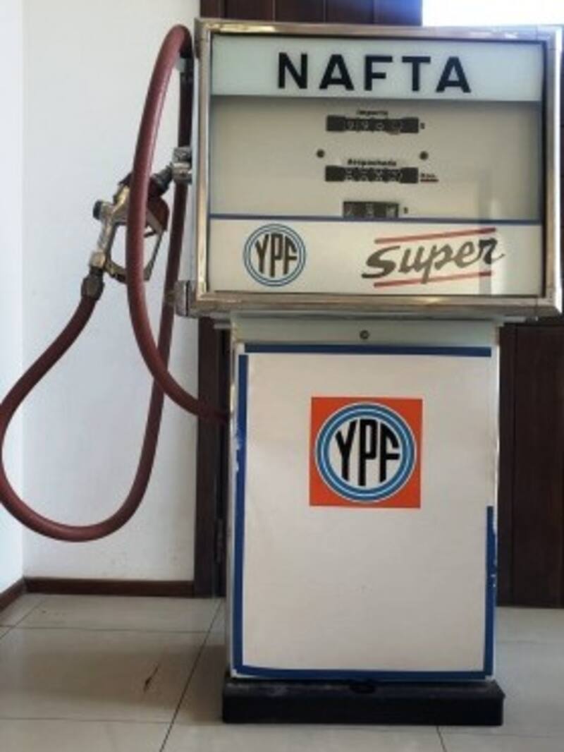 Entre otros originales artículos, hay una Siambretta de lujo, mod. tv 175cc, año 1970, con motor 0 km. (restaurada a nueva) y un Surtidor antiguo de YPF.