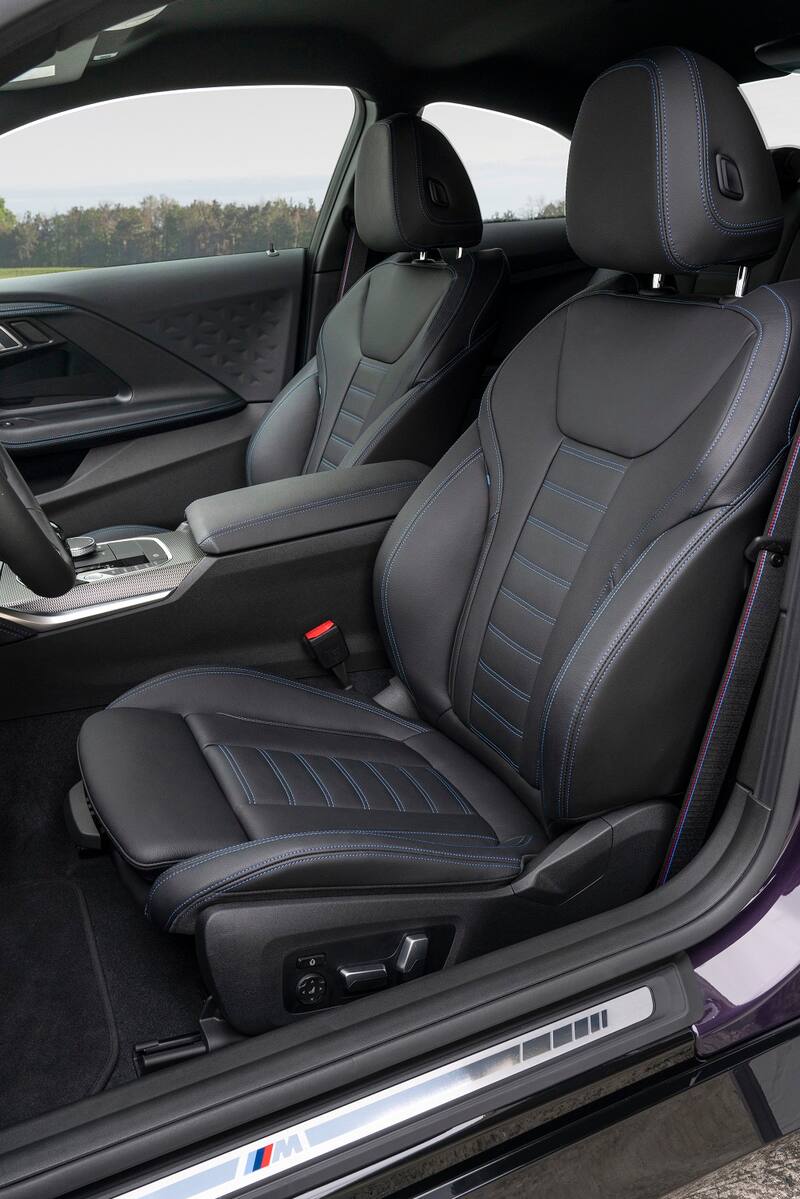 El equipamiento de serie incluye las butacas delanteras con ajuste eléctrico y el volante deportivo M de cuero. Un nuevo elemento de diseño son las superficies trapezoidales en los reposabrazos de las puertas. A su vez, junto con la iluminación ambiental de 6 tonos, sus superficies perforadas se iluminan promoviendo un aura de elegancia y deportividad.