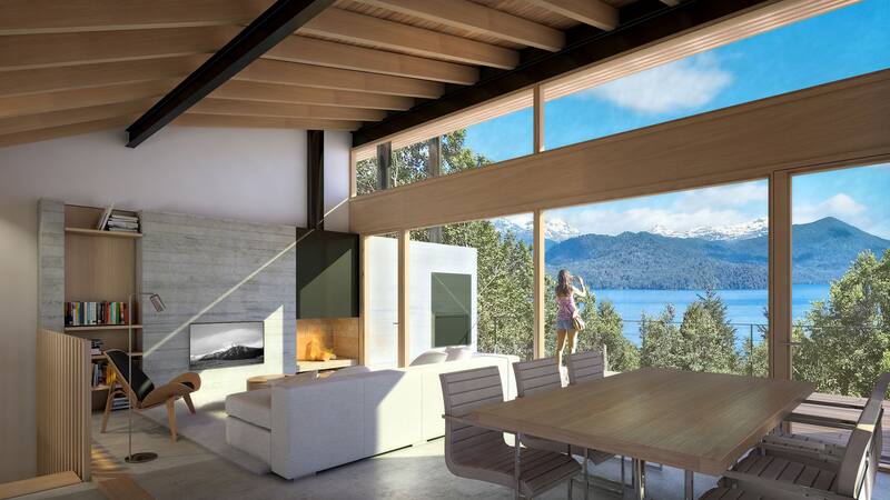 Comercializado por Toribio Achával, este nuevo emprendimiento ubicado en sobra la ruta 40 ex 231 está emplazado sobre una ladera, en un lote de 10.170 m2 con vistas panorámicas al lago Nahuel Huapi.
