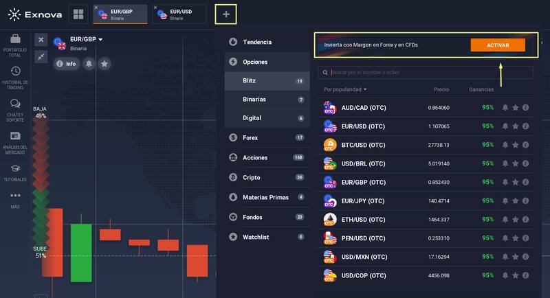 Exnova es uno de los pocos brokers lanzados recientemente que permite operar con instrumentos como las opciones binarias, digitales y blitz, además de con divisas tradicionales como el forex, las acciones, las criptomonedas, materias primas y ETFs.