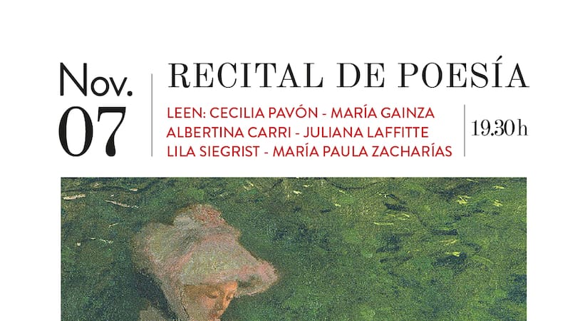 A cielo abierto, los jardines del museo serán escenario para cada una de las lecturas, que comenzará la autora del reciente "La libertad de los bares", la poeta y traductora mendocina Cecilia Pavón, quien fundó junto a Fernanda Laguna la editorial y espacio de arte Belleza y Felicidad.