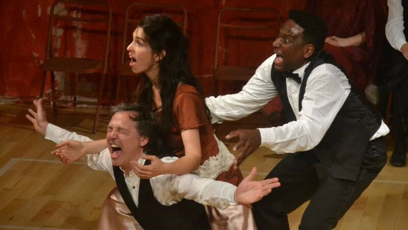 Otro punto a resaltar es el trabajo corporal del reducido elenco que se mantiene siempre en escena. Los actores saltan de un personaje a otro con mínimos recursos que los diferencian, como un elemento más en el vestuario o una pose diferente, lo que obliga a los espectadores a estar familiarizados con el texto.