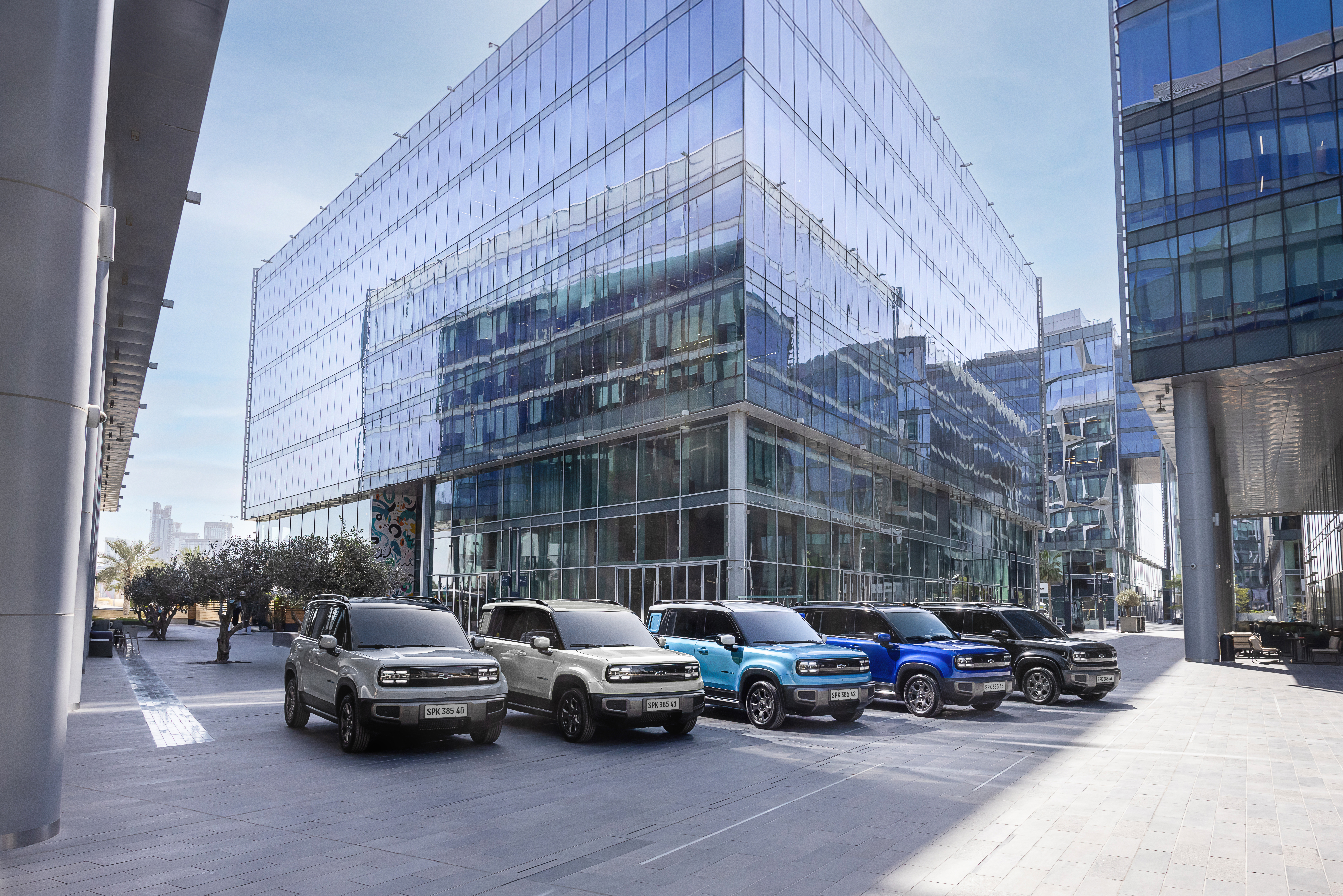 Por fuera, el Spark EUV muestra un diseño limpio y contemporáneo. Entre sus características exteriores se destacan los faros LED tipo proyector, parrilla negra High Gloss, luces DRL automáticas, barras de techo y puerto de carga tipo 2 (EURO TYPE CCS2) con capacidad de 6,6 kW en corriente alterna. El vehículo estará disponible en cinco colores: Azul Aqua, Azul Tormenta, Gris Nube, Negro Galaxia y Blanco Destello.