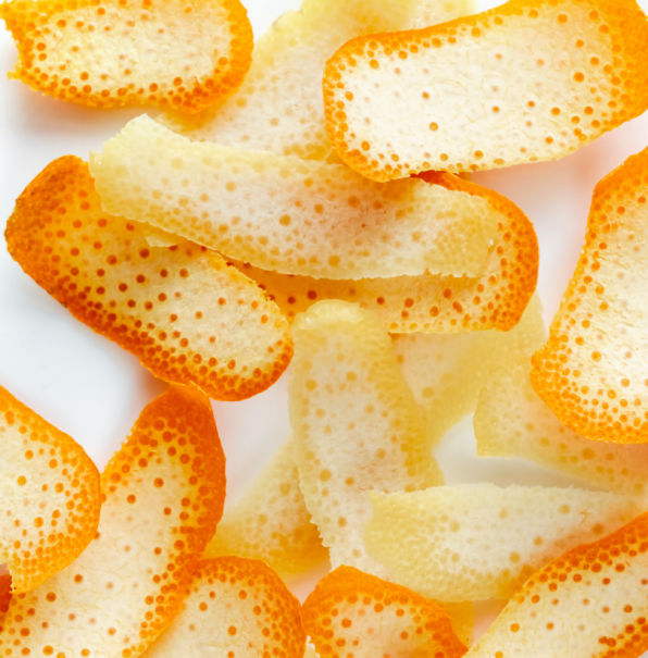 - Una vez listo nuestro cocktail, lo servimos en un vaso corto con hielo nuevo y vamos a tomar una piel de naranja, la cual primero vamos a apretar sobre el cocktail para aportar el aroma de los aceites esenciales de la fruta y luego la vamos a introducir en el vaso como decoración.