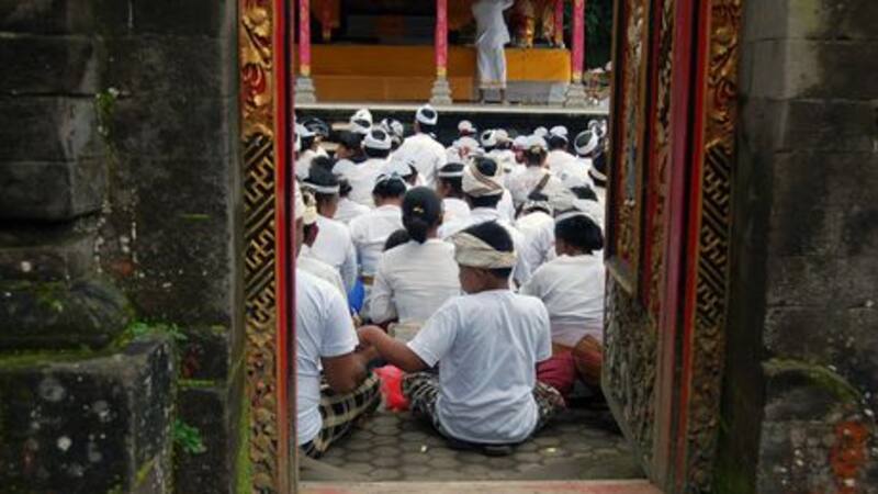 En Indonesia existen cinco religiones oficiales que pueden ser practicadas con libertad: el islamismo (85 por ciento de la población), el cristianismo, el budismo, el hinduismo y el confucionismo. Si bien el 95 por ciento de los habitantes de Bali practica el hinduismo y centra sus actividades cotidianas en torno a esta religión, los preceptos y creencias de la isla difieren mucho de los que se observan en la India. Así, el hinduismo balinés es una amalgama de las distintas religiones que hubo en Bali y en la isla vecina de Java a lo largo de la historia. Y si bien está fuertemente basada en aquél, los balineses amalgamaron esa cosmovisión con sus creencias animistas previas, de modo que crearon su propia religión, diferente de cualquier otra en el mundo.