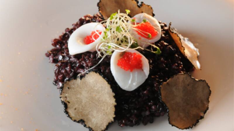 Risotto negro de mar con calamaretes y trufa fresca