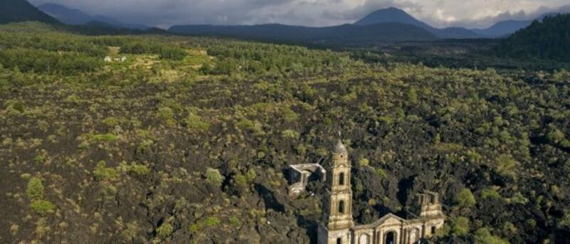 De las ruinas del viejo San Juan sólo sobresale la parte superior de una iglesia que sobrevivió a la lava.