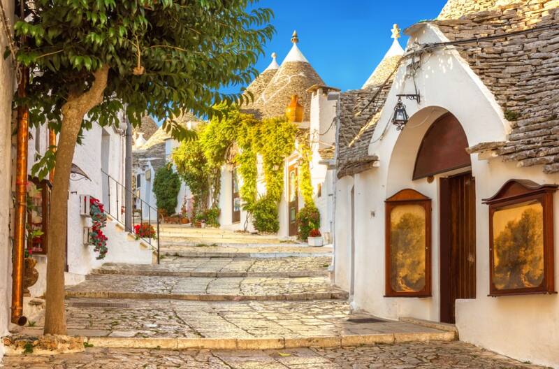 Los trullos, como los de Valle Itria, ofrecen un bello testimonio del pasado rural de la región mientras numerosos castillos surgen a lo largo de las costas del sur.