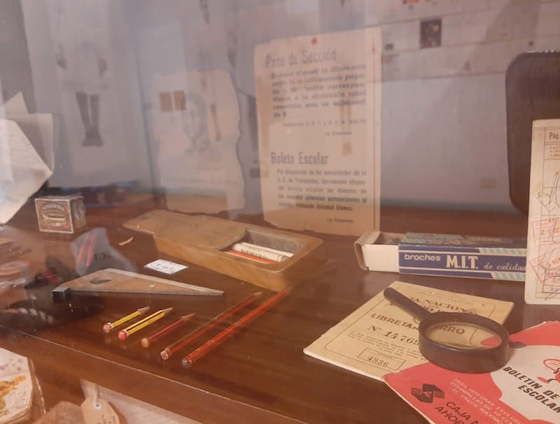 Archivo escolar: Fotografía, objetos y registros que remiten a la escuela como institución formadora. La muestra propone recordar los cambios de planes de estudio, modalidades de trato, tiempos de recreación y recorridos educativos, reconociendo en ellos la memoria compartida de generaciones.