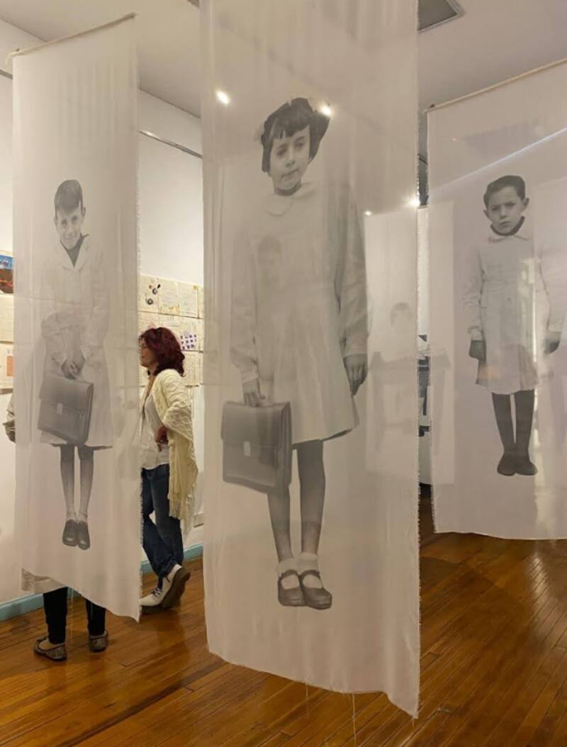 La exposición se despliega como un delicado collage de recuerdos. Maquetas de casas de madera que evocan la fragilidad de los primeros hogares, instalaciones con imágenes de niños en uniformes escolares que confrontan con la memoria colectiva, y una colección de fotografías antiguas que nos sumergen en la historia familiar. Cada obra es una pieza de un rompecabezas que invita a reflexionar sobre la construcción de la identidad y la importancia de preservar la memoria de las infancias.