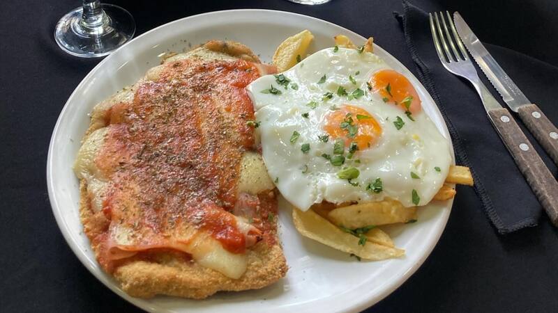 También se puede comer carne al horno o bife de chorizo con papas y batatas al horno. Según, el corte, los precios inician desde los $ 4000 a los $ 8000 cada uno. Las milanesas son enormes y vienen también con pure.