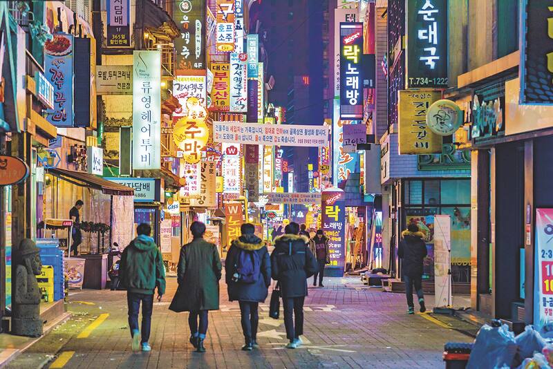Cuando se pone el sol, en la capital surcoreana se encienden las luces: las fachadas de los rascacielos, las gigantescas pantallas de led de los centros comerciales, los omnipresentes celulares. Un mejor plan es ver el atardecer desde la N’Tower y descubrir en una de las ventanas la impresionante distancia que la separa de Buenos Aires: 19.426 kilómetros. A sus pies, la ciudad es una alfombra mágica estrellada, un gigantesco tapiz bordado de luciérnagas techie, mientras afuera las parejas se sacan un sinfín de selfies antes de ir de shopping al cercano Dongdaenum –abierto toda la noche– o de paseo por las calles peatonales de Myeong-dong, bordeadas de restaurantes, tiendas design y locales de videojuegos. Es el reino de la cultura juvenil en un país que consagró a las nuevas generaciones como la gran apuesta de su futuro… Y ya ganó.