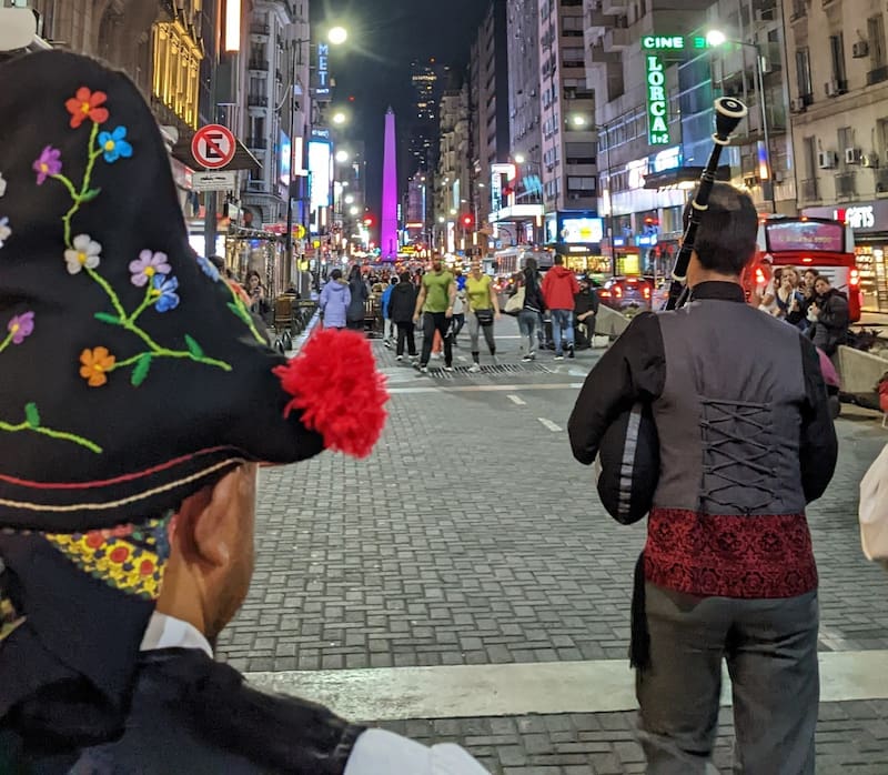 Una docena de entidades de la colectividad gallega sorprendieron el fin de semana a la Avenida Corrientes al son de las gaitas, panderetas y tambores, para dar a conocer El Camino Gallego, un recorrido por puntos clave de la Ciudad de Buenos Aires para descubrir las tradiciones y costumbres de esa región de España.