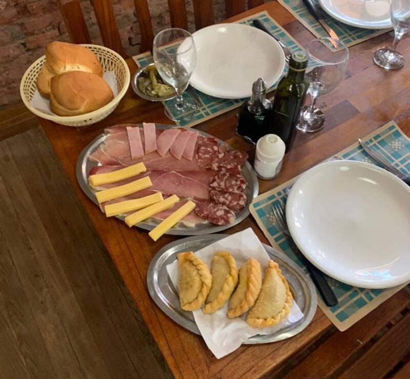 El restaurante ofrece una propuesta de tenedor libre donde predominan los cortes de carne al asador, empanadas fritas y fiambres de entradas a la que le siguen pastas para luego cerrar con postres clásicos como flan o queso y dulce.