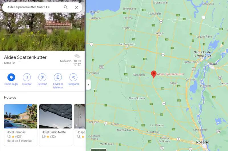 Al profundizar en la búsqueda, se confirmó que este Spatzenkutter santafesino no tenía existencia real, y en su ubicación solo se podía encontrar campo. No había ninguna aldea. La información de Google Maps generó un lugar inexistente.