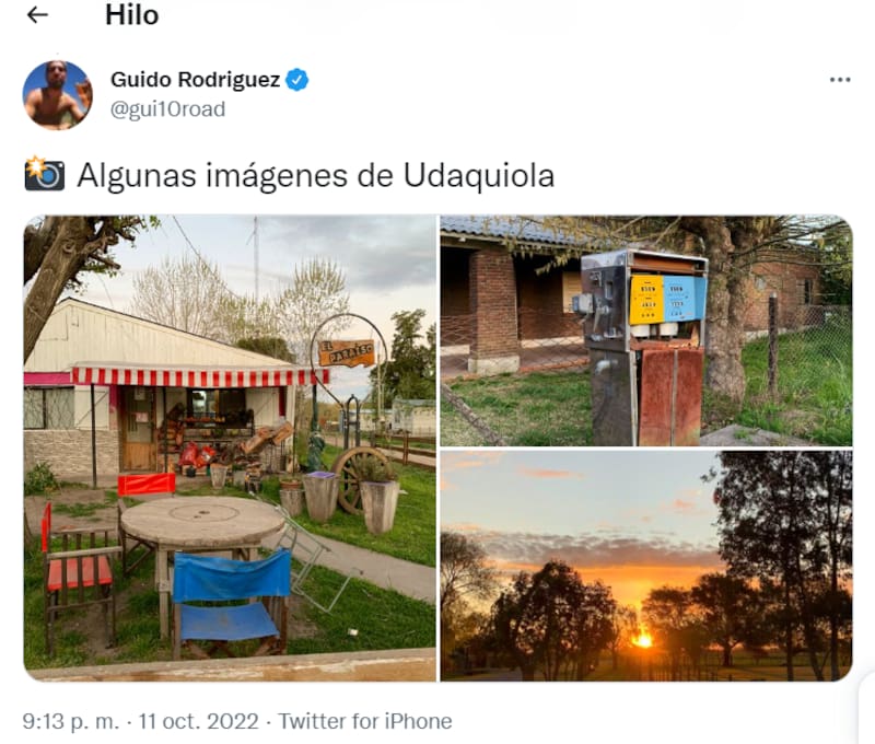 El pueblito bonaerense cuenta con 100 habitantes, destacó el influencer de viajes Guido Rodríguez. El lugar se caracteriza por su naturaleza, paz y tranquilidad. Dentro de Udaquiola, justo en medio de un bosque, hay una estación ferroviaria que fue inaugurada en 1911 y en la que hace más de 50 años no pasa el ferrocarril.