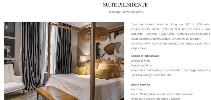 Si bien el hotel cuenta con 13 habitaciones en suite, existe la chance de alojarse en el cuarto que fue ocupado, entre 1950 y 1976, por Alfonsín.