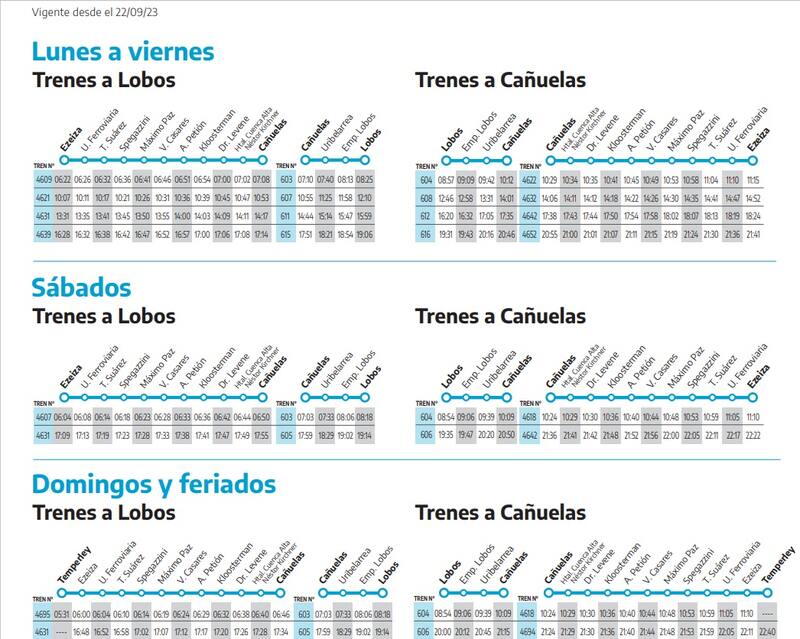 Con cuatro servicios diarios de lunes a viernes, y dos servicios los sábados, domingos y feriados, el trayecto tiene una duración de casi 2 horas. El valor total desde Plaza Constitución es de $ 98.