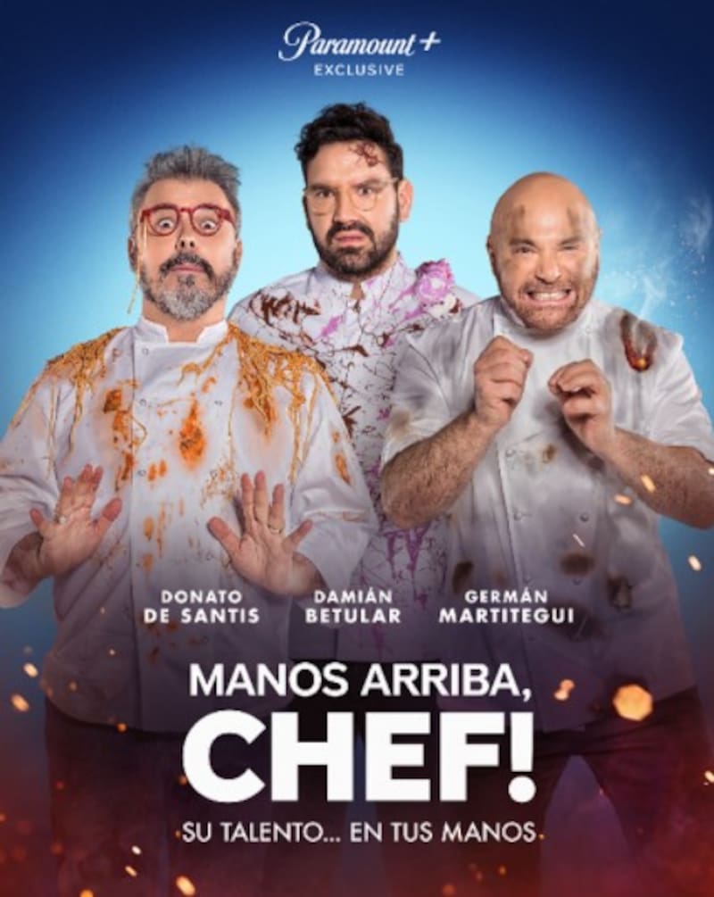 Tras el éxito de MasterChef,Donato de Santis, Damián Betular y Germán Martiteguivuelven a la pantalla chica con un nuevo reality de cocina, llamado 'Manos Arriba, chef'.