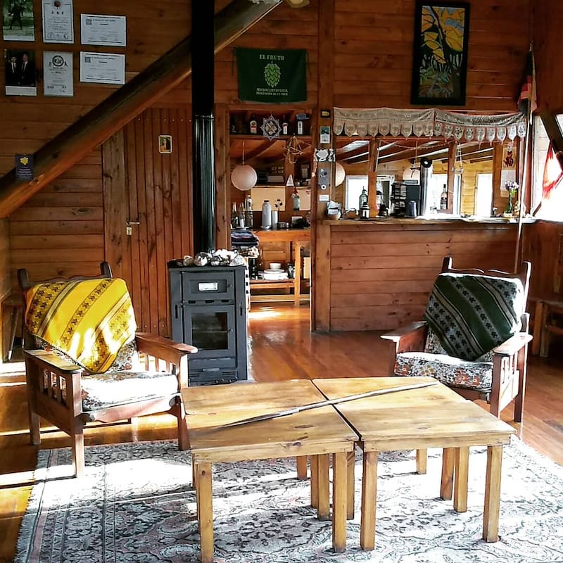 También existe la opción de ir al hostel, un espacio compartido en forma de gran cabañon con su estilo bien particular, amplio, luminoso, ventilado que te conecta directo con el entorno de la naturaleza.