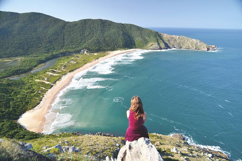Hay 42 arenas oficiales, y probablemente sean más, pero las mejores siempre son las de difícil acceso, esas a las que se llega sólo por mar o a través de un sendero o trilha, como Lagoinha do Leste. Es la Ley de Murphy. En Pântano do Sul hay un camino, muy angosto, que encuentra sólo quien se anima a preguntar. El senderito pasa junto a los alambrados de unas casas repletas de perros que ladran, y trepa empinado, especialmente los primeros 500 metros. Sube, sube, descubre unas cascaditas de agua dulce, sigue subiendo y, en lo más alto, regala un balcón de 360º con vista a Lagoinha do Leste, la isla entera, y todo el Atlántico en el horizonte.