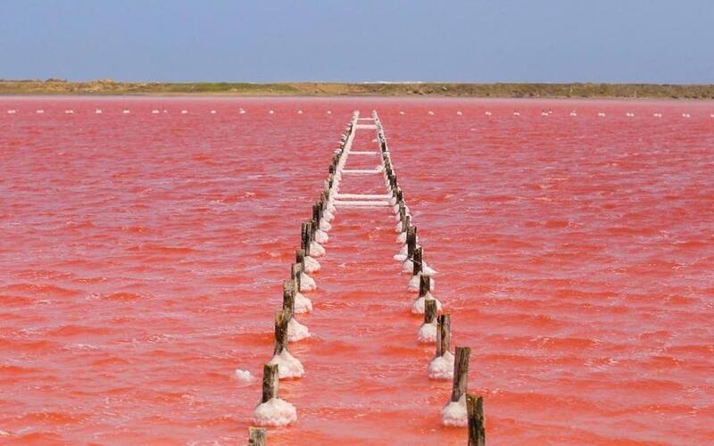 El color rosa que se ve en ellas se da por un fenómeno natural derivado de la gran concentración de salina en las aguas. Al caer la lluvia, las gotas de agua rompen los gránulos de sal y crean este fenómeno. Asimismo el mar posee unas microalgas halófilas que producen betacaroteno, creando ambientes de alta salinidad y luminosidad.