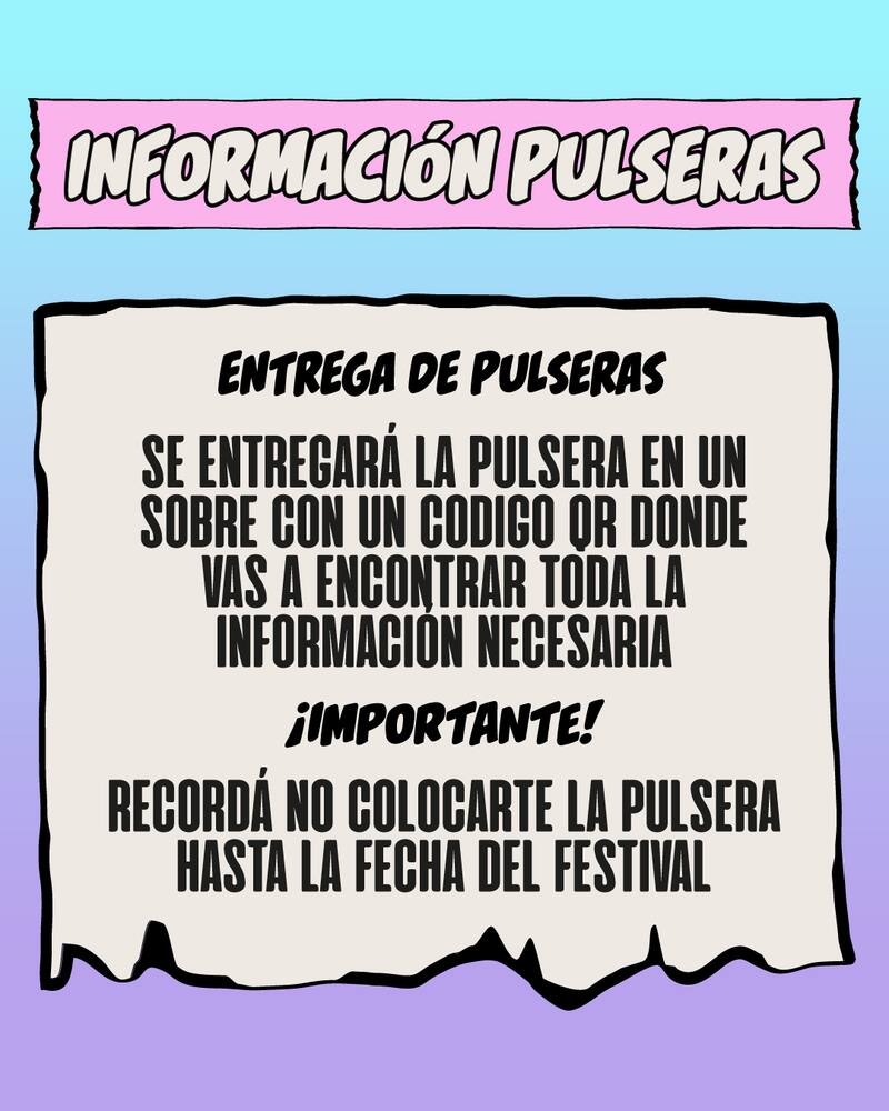 Las pulseras se entregarán en un sobre que contiene un código QR, que se podrá escanear con la cámara del celular para obtener toda la info acerca del festival.
