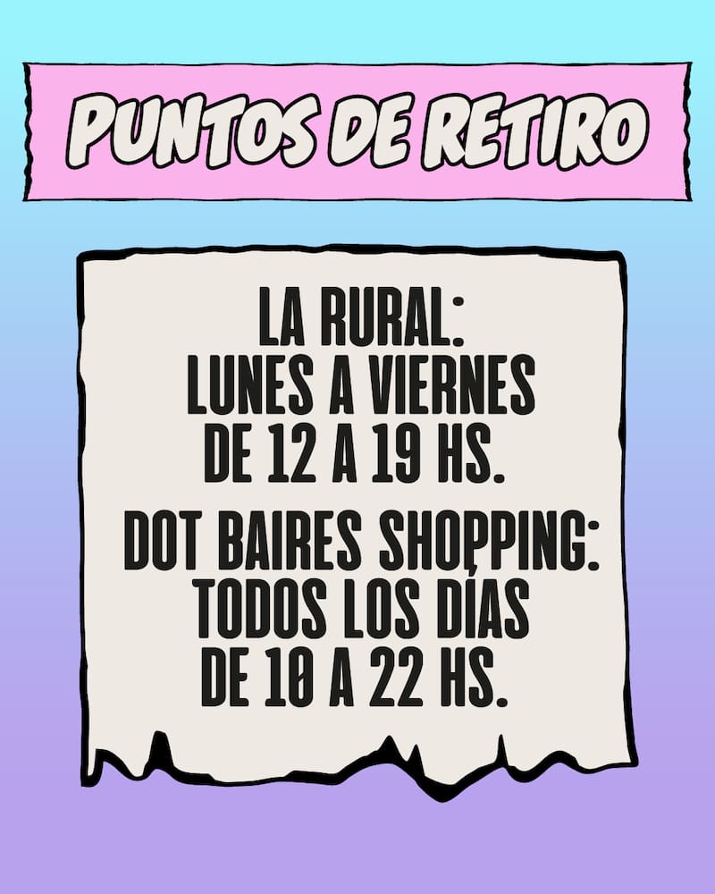 El canje de cintas se llevará a cabo hasta un día antes del festival inclusive, de lunes a viernes de 12 a 19 horas en La Rural (Av. Santa Fe 4201, frente a Plaza Italia), y todos los días de la semana de 18 a 22 hs en el Dot Baires Shopping. Los días 17, 18 y 19 de marzo, se podrán retirar las pulseras en boletería del Hipódromo de San Isidro.