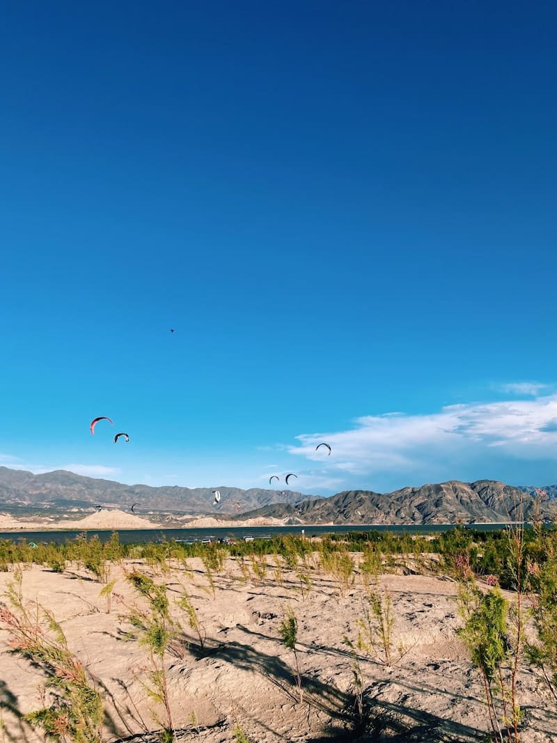 Llegamos a la ciudad de San Juan en avión y nos quedamos ahí la primera noche para arrancar bien temprano a la mañana hacia Rodeo, el pueblo donde está el inmenso dique que se adorna todos los días con kites de todos los colores y tamaños. Fueron dos horas y media de un paisaje montañoso y para acompañar, música al mejor estilo "roadtrip". Ya empezamos a respirar el aire del lugar - nada de señal y una ráfaga de imágenes naturales que te tenían pegada a la ventana -, los placeres de este tipo de viajes donde la naturaleza es la protagonista indiscutida.