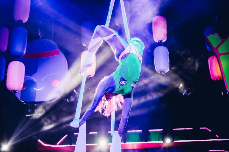 Cada media hora se inauguraba un nuevo show que iba subiendo la apuesta a la par de la carga erótica: un hombre en sunga con sombrero cónico vietnamita protagonizó lo que parecía ser un híbrido entre taichí y un striptease; una mujer con peluca rosa y kimono apareció cantando un tema de Dua Lipa acompañada de otra mujer que hacía acrobacias sobre un aro; coreografías en el agua sobre una pileta colgante al mejor estilo Fuerza Bruta; show erótico dentro de una bañadera con pintura flúor de por medio... Sí, todo eso - entre otras cuantas cosas -, sucedió la misma noche y en el mismo espacio.