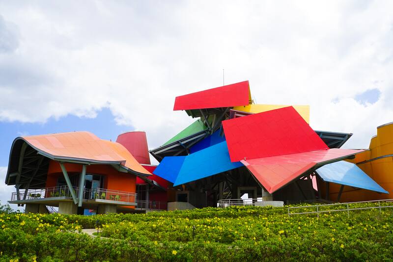 El Museo de la Biodiversidad es el más flamante de Panamá. Abrió sus puertas a fines de 2014 en un edificio muy llamativo que es, además, la única obra del arquitecto estadounidense Frank Gehry –autor del Guggenheim de Bilbao, España– en América latina. Los paneles superpuestos que dan forma a su techo forman un mosaico de colores vivos en la entrada del Canal, de forma tal que se lo puede contemplar, como si fuese un hito geográfico, desde varios puntos e inclusive rutas costeras del centro de la ciudad. Recorrerlo es una buena manera de empezar una estadía en Panamá, porque allí se explica todo lo que se podrá descubrir, luego, en términos de paisajes y naturaleza: desde la formación del istmo hasta su rol como puente biológico entre las Américas. De hecho, la sala más llamativa es la del Gran Intercambio, donde reproducciones a escala de los animales actuales y los ya extintos indican cómo la fauna pasó de un subcontinente a otro a lo largo de los últimos 3 millones de años.