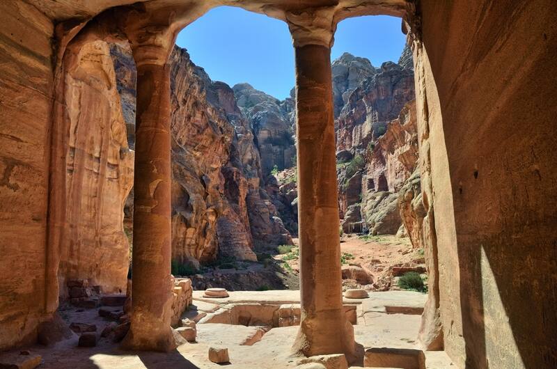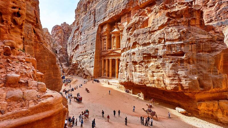 A no más de tres horas de Amman, capital de Jordania, este sitio único se ubica en el fondo de una profunda garganta formada en el desierto, y fue testigo de la larga historia de Medio Oriente desde tiempos inmemoriales. Ante los ojos atónitos de los viajeros, aparece como una impecable ciudad, absolutamente tallada en la roca, en la que se lucen en perfecto estado templos, monumentos, teatros y santuarios de la antigüedad árabe. Sus paredes de piedra, algunas de ellas de más de 100 metros de altura, repletas de escrituras y símbolos, junto a los canales de agua que acompañan el camino, son el deleite de miles de visitantes.