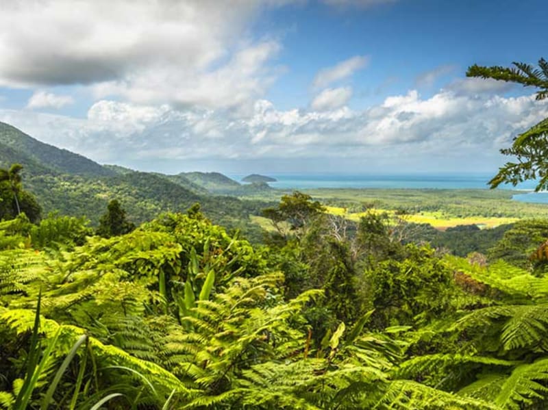 Daintree Rainforest: La región de Daintree integra la selva tropical, las playas de arena blanca y los arrecifes que bordean la costa en una combinación natural privilegiada. Aquí convive la mayor concentración de especies de flores primitivas del mundo, comparable únicamente con zonas como Madagascar y Nueva Caledonia.