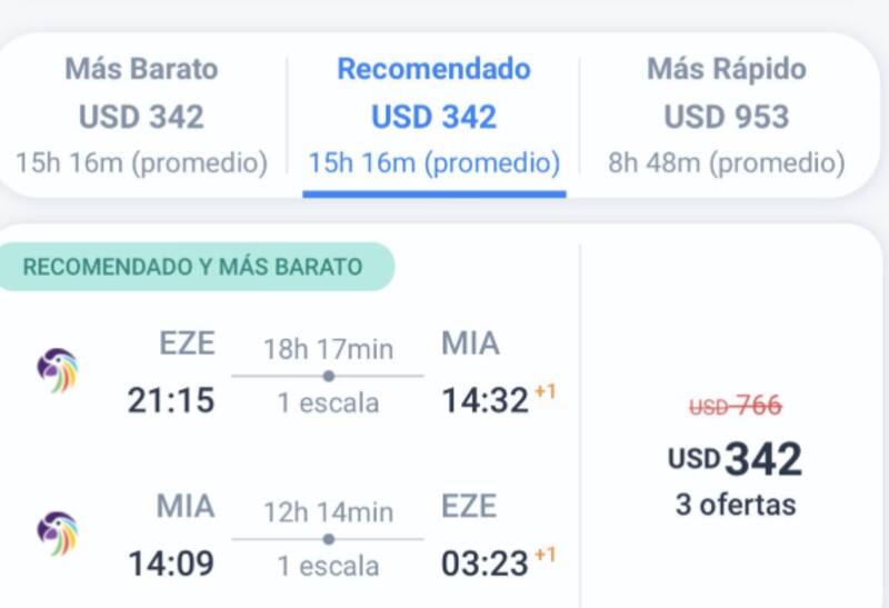 La aerolínea ofrece vuelos ida y vuelta desde los u$s 342 en un trayecto 15h 16 m con una escala. El precio puede variar según las fecha y equipaje elegido.