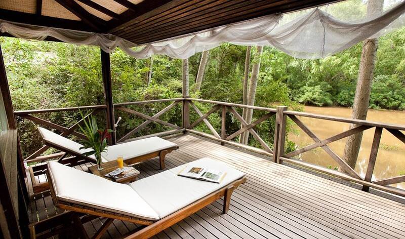 En las copas de los árboles, a ocho metros de altura, se esbozan las encantadoras cabañas de madera dura y roca basáltica con diseño bio-ambiental de Cuña Pirú Lodge, que significa "mujer flaca" en guaraní. Este alojamiento, diseñado para que el huésped se sienta parte de la selva, se encuentra a tan sólo 400 metros del Parque Nacional Salto Encantado, una joyita. "Contamos con veinte hectáreas de selva, piscina, senderos y la posibilidad de avistar todo tipo de aves. Se suelen ver monos titís y coatíes en zona. Cada huésped tiene una hectárea para sí, y al pie de una de las cabañas pasa un arroyo", le cuentan a MALEVA desde el lodge.