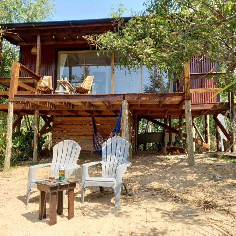 Los Juncos y Los Ceibos, las otras dos cabañas, tienen playa privada y son claves para ir en pareja, por ejemplo. También hay un muelle principal que invita a pasar el día colgando de sus maderas. Si bien el verano es clave, en invierno también está preparado para recibir huéspedes, tiene salamandra y la playa no levanta viento.