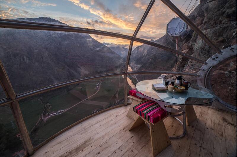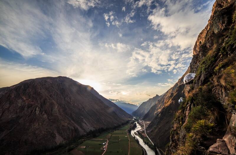 Ubicado en Urubamba, en el Valle Sagrado de los Incas, Skylodge Adventure Suites es un hotel cápsula que sorprende por estar colgado a 400 metros de altura.