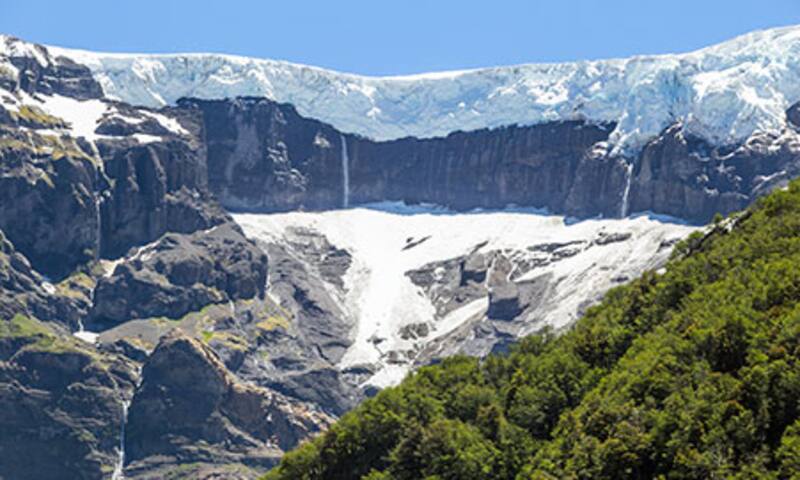 Lo que más llama la atención es la imponente catarata que se genera de manera natural por el desprendimiento del glaciar, a la cual se puede acceder por los senderos de trekking.