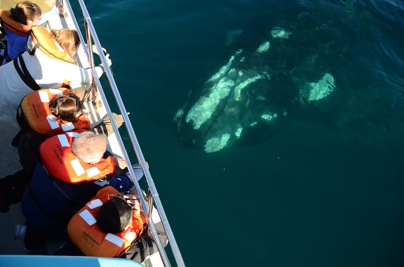Una perspectiva diferente y relativamente nueva (tiene 5 o 6 años) la ofrece Southern Spirit y su Yellow Submarine: a bordo de un barco con piso submarino, propone observar a las ballenas en superficie, desde la cubierta superior, y desde una cabina submarina, a través de 40 ventanas bajo el nivel del agua. Es una buena manera de dimensionar el tamaño de la ballena franca austral en su totalidad, que llega a medir entre 15 y 17 metros. El precio de esta excursión es de $ 16.800 (Mayores) y $ 8.400 (Menores).