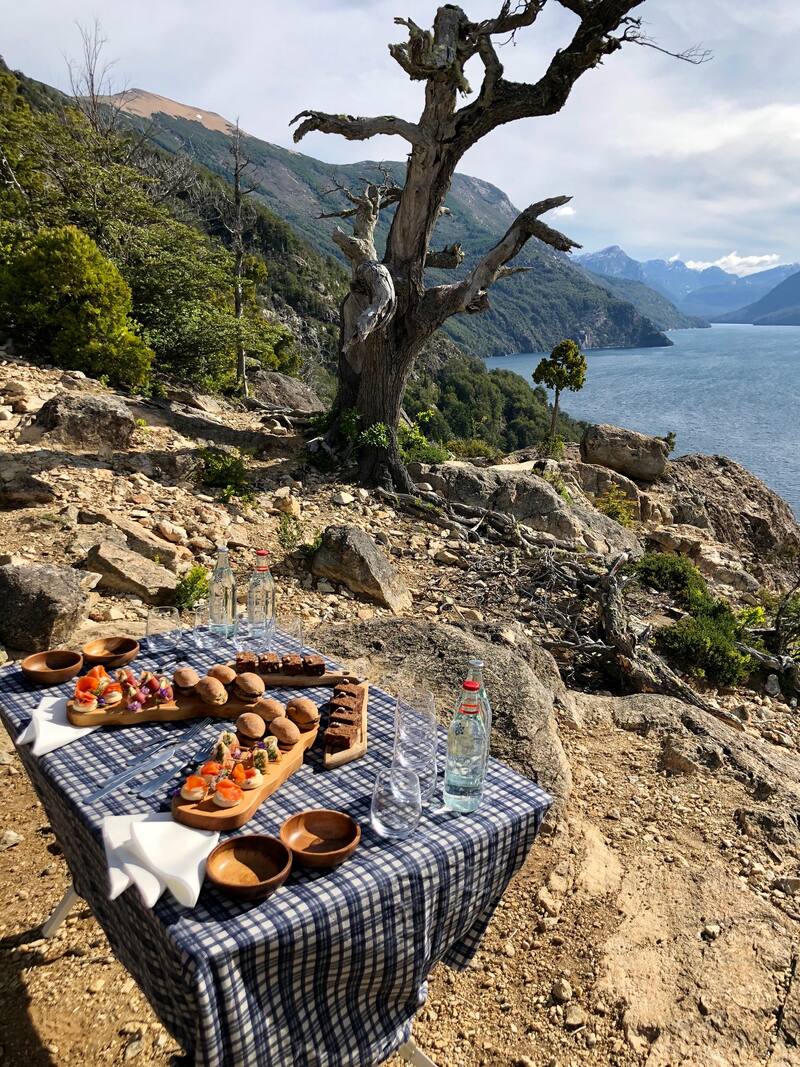 Se trata de una caminata guiada, suave pero en subida, por un sendero conocido hasta llegar a un mirador oculto con una panorámica espectacular del Lago Nahuel Huapi. Para llegar a este punto secreto, nos desvían del sendero y en menos de cinco minutos nos guían a una mesa de lujo para degustar los mejores sabores patagónicos al aire libre.
