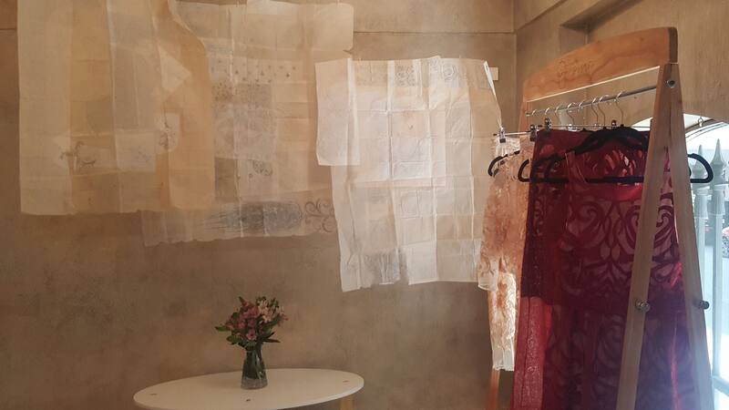 La nostalgia de un tiempo que transcurre de manera más lenta, que resiste en pueblos del interior como Sauce Viejo donde reside la artista, de una comunión femenina materializada en objetos que pasan de abuelas, a hijas y nietas son elementos que aparecen tanto en la propuesta artística de Arnaudo como en la textil de Diseta y que las curadoras ponen al servicio de todo aquel que quiera visitar el espacio que en el pasado acogió una galería de arte.